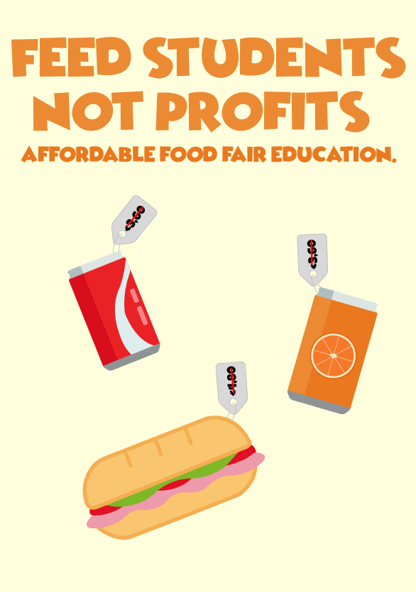 Voor de Student Challenge heb ik een poster gemaakt met de boodschap: “Feed students, not profits.”Het gaat over betaalbaar eten voor studenten. Ik wilde laten zien dat eten op school niet te duur hoeft te zijn en dat onderwijs eerlijk en betaalbaar moet blijven.