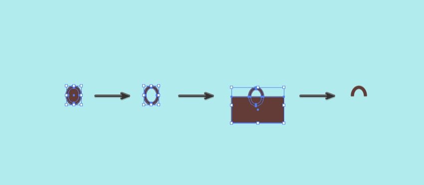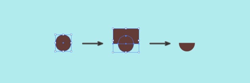 De volgende is de mond. Maak een ellips met behulp van de Ellipse Tool (L) met Breedte: 36px en Hoogte: 38px. . Vul hem met dezelfde bruine kleur. Maak een grotere rechthoek met behulp van de Rechthoekgereedschap (M) en plaats het over de bovenste helft van de ellips. Selecteer beide vormen, en in de Pathfinder, raak Minus Front.