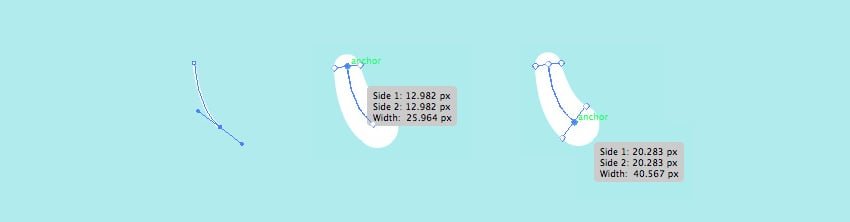 Laten we het wat armen geven. We zullen de Pengereedschap (P) en Breedtegereedschap (Shift-W) om dit te doen. Begin met het tekenen van een eenvoudige gebogen lijn met de Pengereedschap (P) zoals hieronder weergegeven. Geef het een witte Stroke met 3 pt Weight en Ronde Cap.