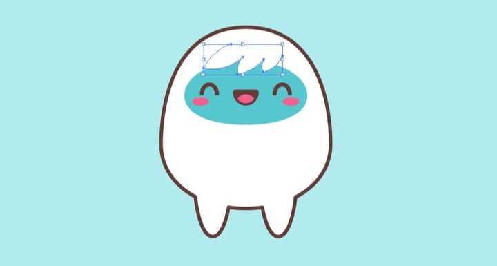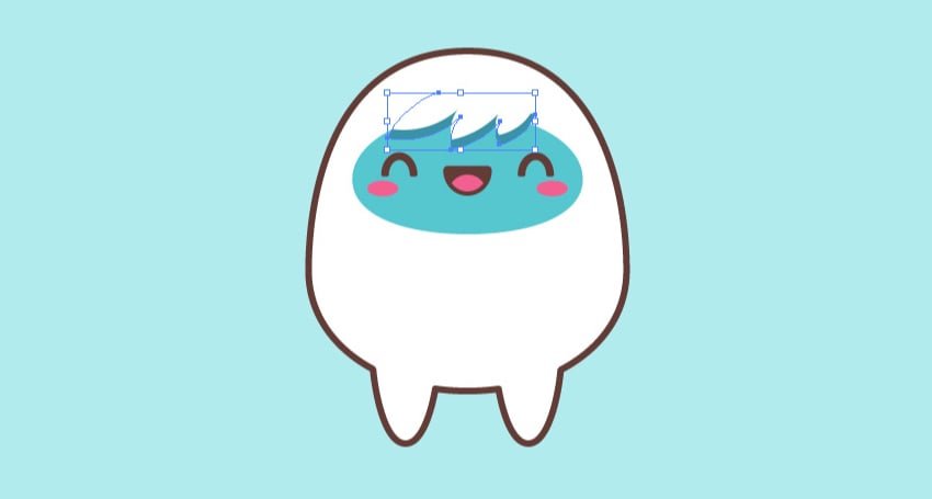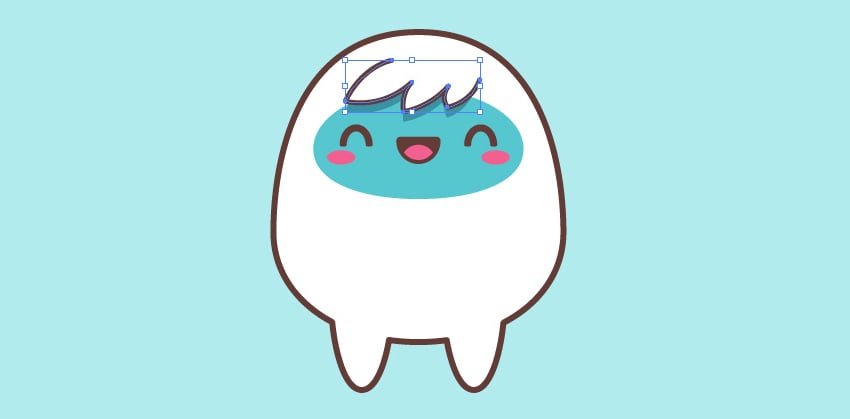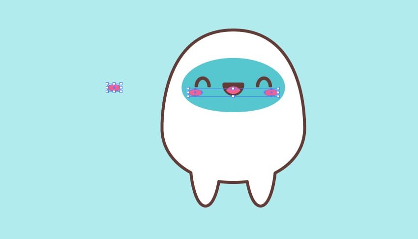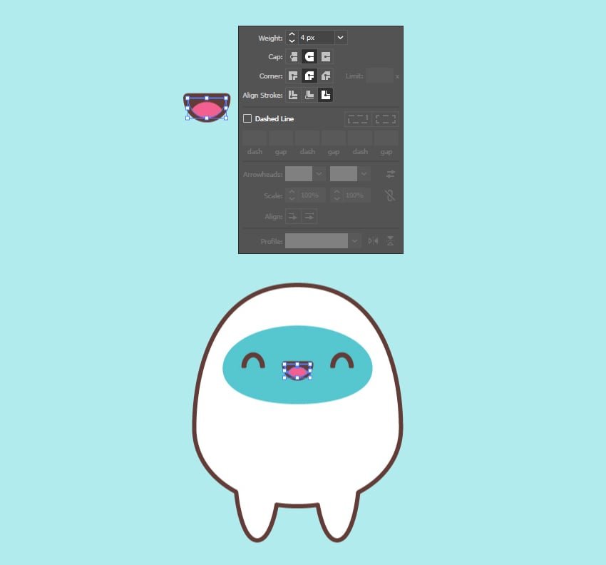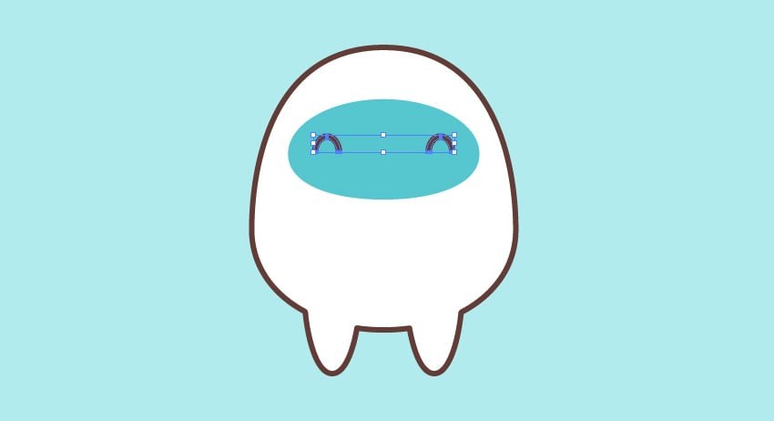 Slag het oog met dezelfde kleur met behulp van 3 pt Weight, Ronde Cap, en Ronde Join. . Plaats het oog op de blauwe gezichtsvorm en dupliceer (Alt-Shift-Drag).