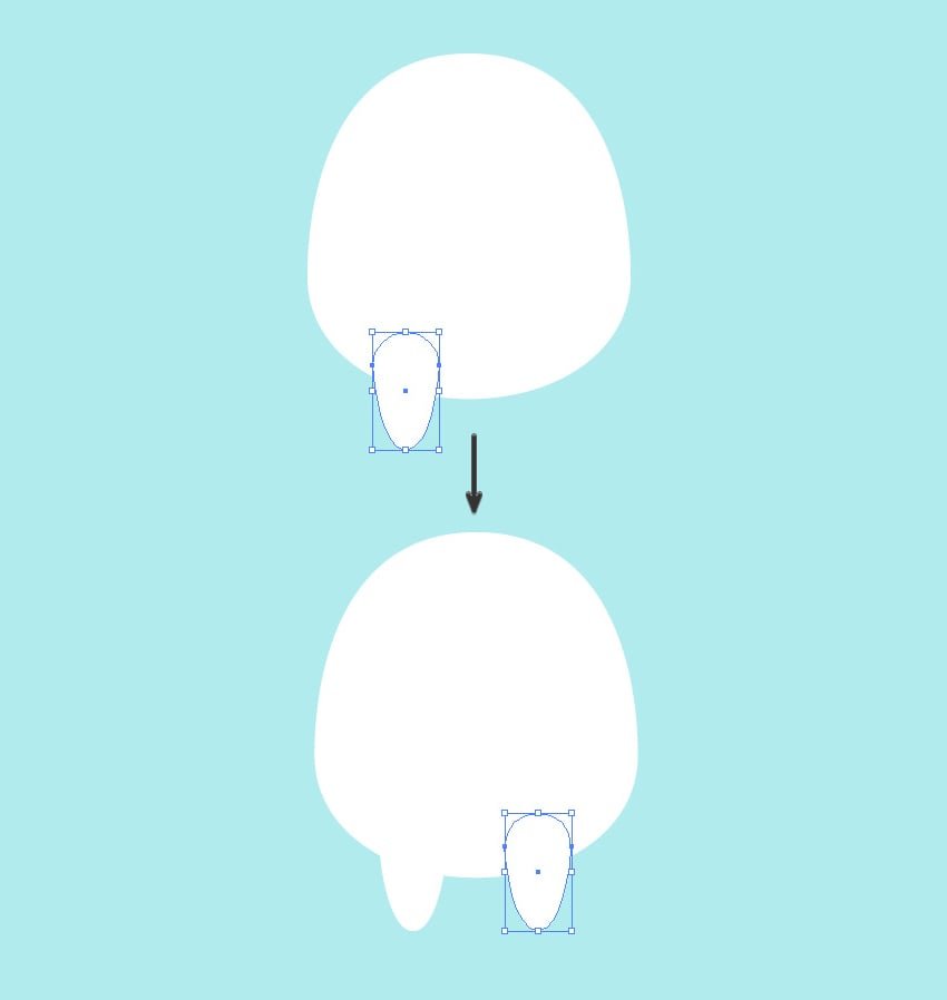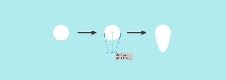 We gaan nu de benen creëren. Gebruik maken van de Ellipse Tool (L), maak een cirkel 60px wide. Met de Direct Selectie Tool (A), selecteer het onderste punt en Shift-drag down about 45px.