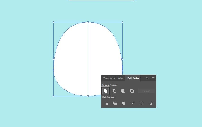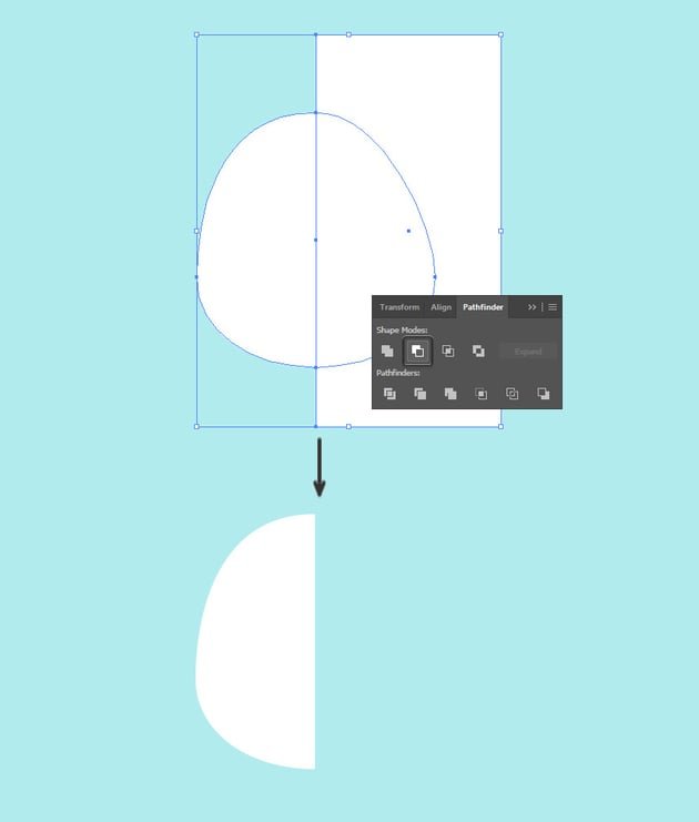 Om het symmetrisch te maken, creëer je nu een rechthoek die groter is dan het lichaam met de Rechthoekgereedschap (M). Met de Selectiehulpmiddel (V), plaats het zo dat de linkerrand op één lijn ligt met het midden van de lichaamsvorm. Selecteer beide vormen. Breng de Pathfinder panel en klik Minus Front.