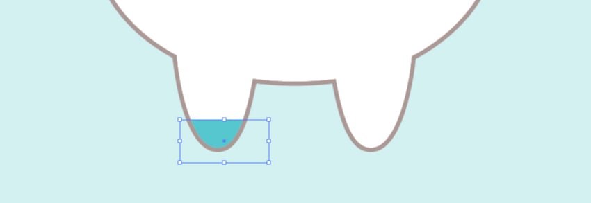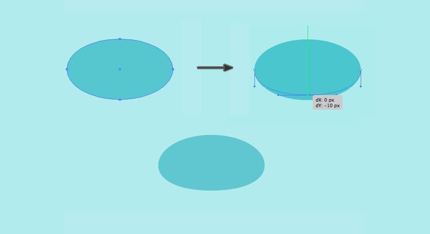 Om het gezicht vorm te maken, maak een ellips met behulp van de Ellipse Tool (L) met Breedte: 210px en Hoogte: 120 px. . Vul met een donkerder blauwe kleur (R=96, G=198, B=208). Direct selecteren (A) het onderste punt en Shift-drag ongeveer omhoog 10px.