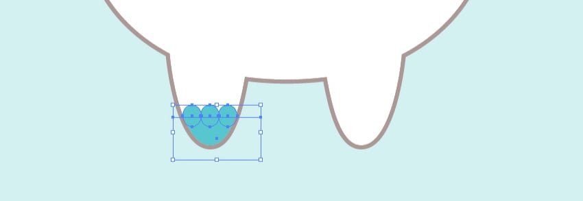 Selecteer alle vormen van de mond en Group zij (Controle-G). Plaats de mond tussen de ogen.