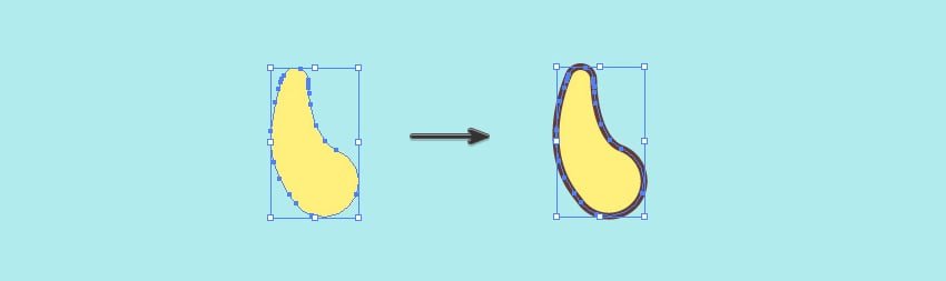 Selecteer de regel en ga naar Object > Pad > Overzichtsslag om er een vorm van te maken. Schets het vervolgens met een 6 pt Slaggewicht in donkerbruin.