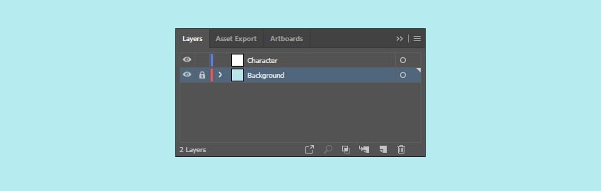 In de Lagen paneel, maak twee lagen. De bovenste laag wordt hernoemd naar "Character", en de onderste laag wordt hernoemd naar "Background." Vergrendel de onderste laag.