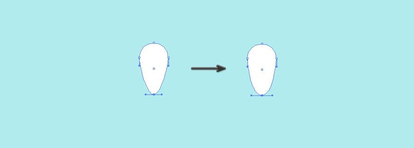 Om de onderkant minder puntig te maken, selecteert u het onderste punt met de Direct Selectie Tool (A). Sleep de linkerhandgreep iets naar links terwijl u deze vasthoudt Shift. Doe hetzelfde aan de rechterkant.