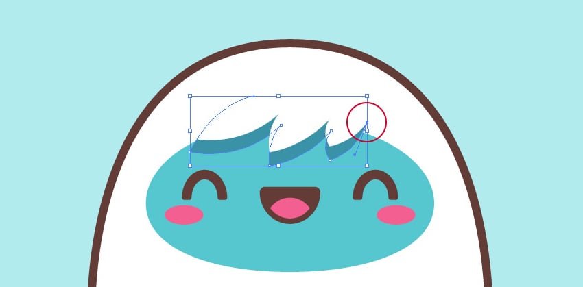 Selecteer het bovenste punt opnieuw. Selecteer de linkerhandgreep en sleep deze naar links, zodat deze er als volgt uitziet.