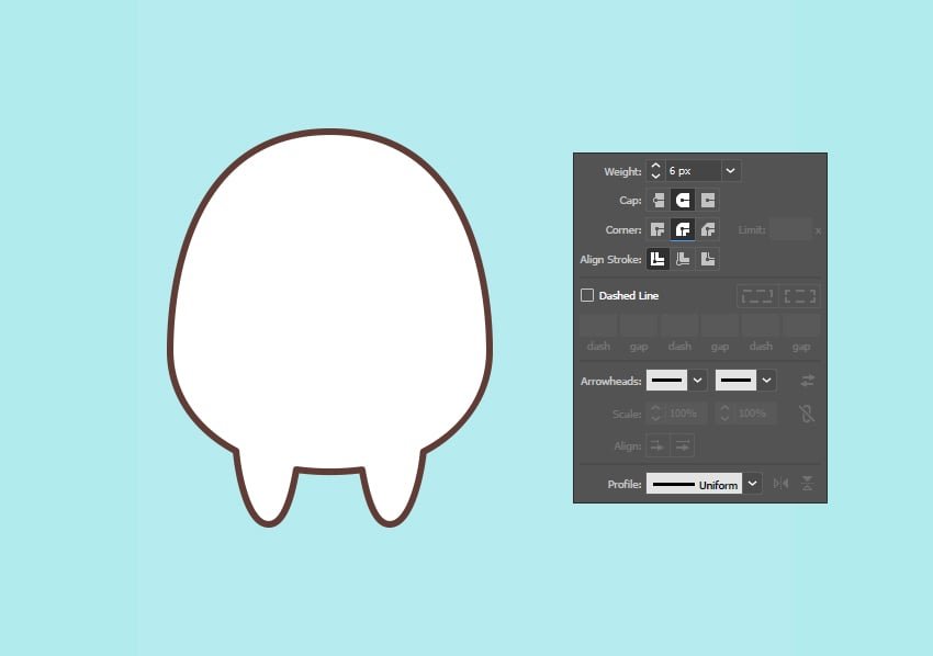 Selecteer het lichaam en schets het met 6 pt Weight en klik Ronde Cap en Ronde Join. . Ik heb een donkerbruine kleur gekozen (R=96, G=60, B=54).